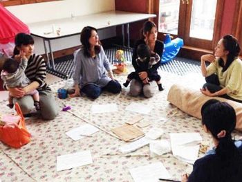 布おむつの会では、 布おむつのこと、育児のことをあれこれ楽しくおしゃべりしながら、 試作した布おむつのモニターにもご協力いただきました。
