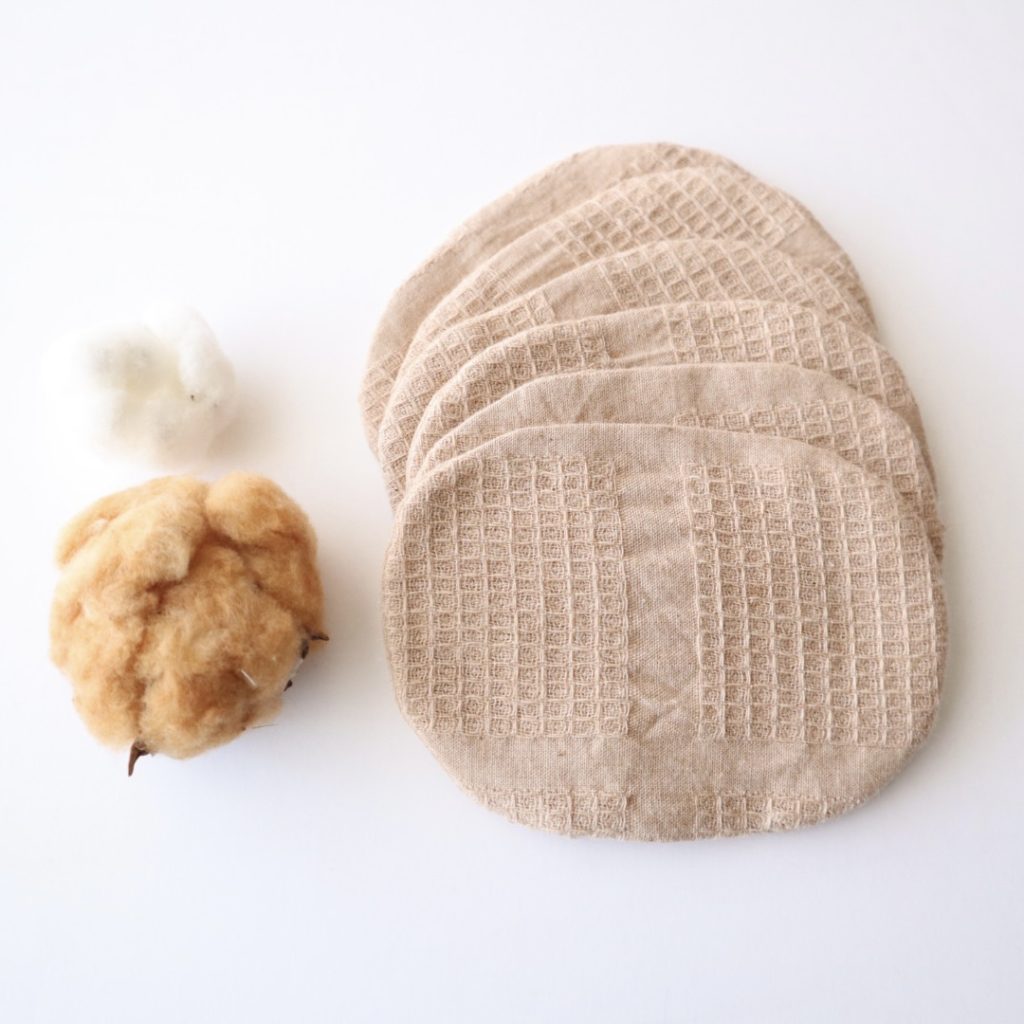 オーガニックコットンの母乳パッドは、敏感な肌にもやさしく、しっかり吸収、洗いやすさも嬉しい一枚。