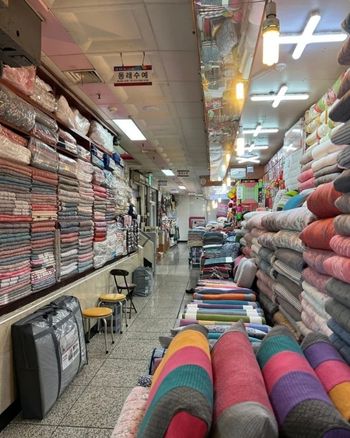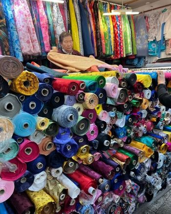 韓国の伝統衣装・韓服の生地がずらりと並ぶ中で出会った、